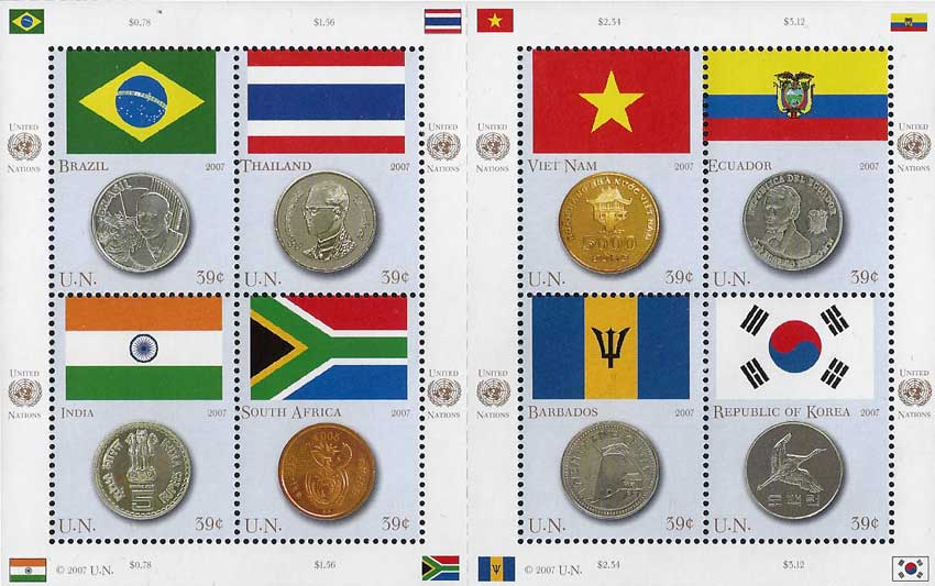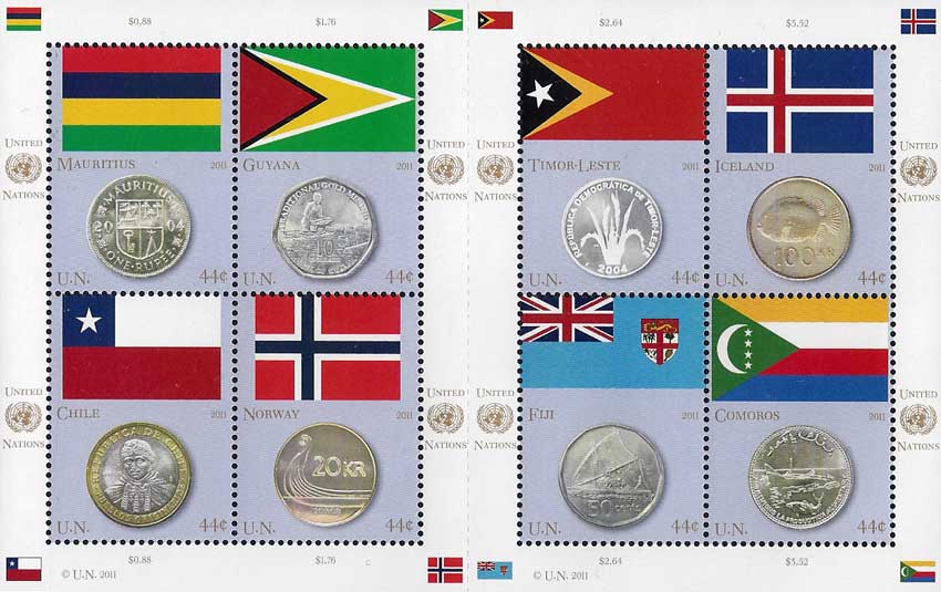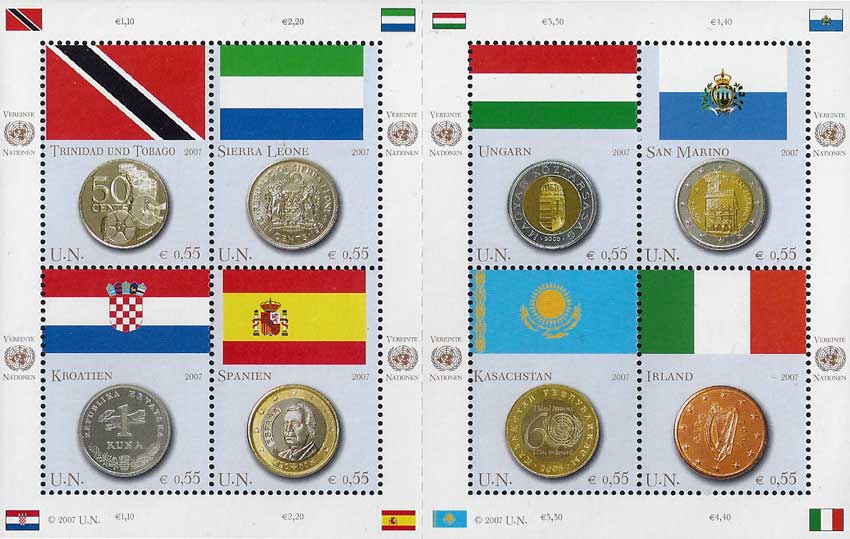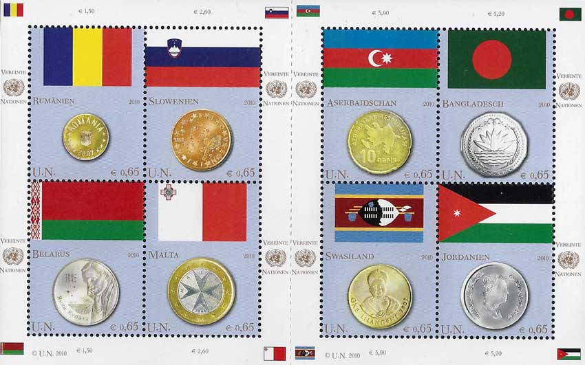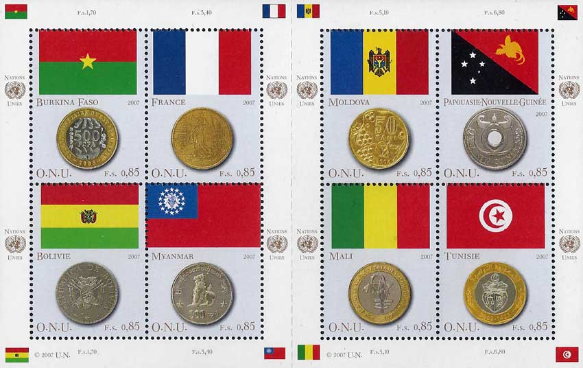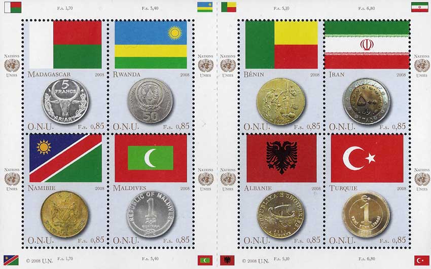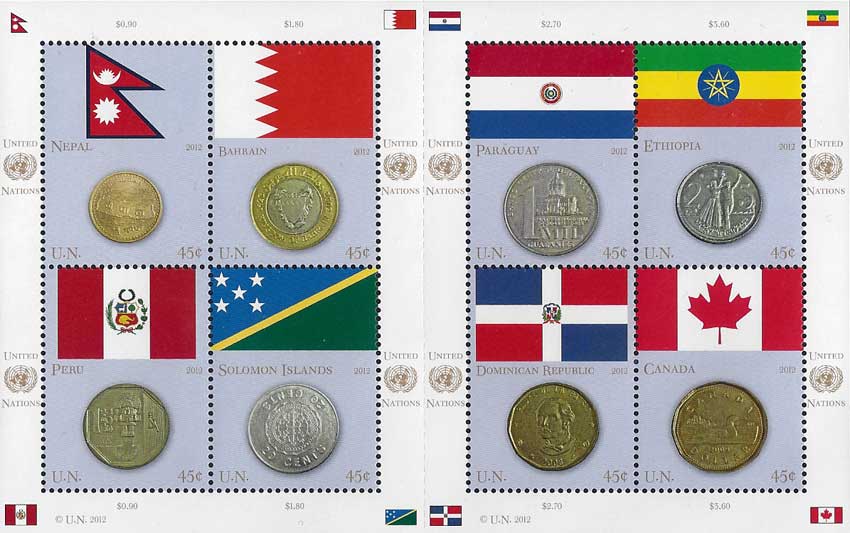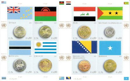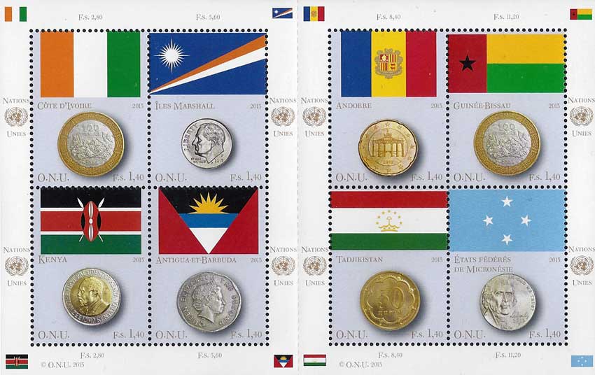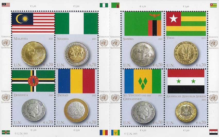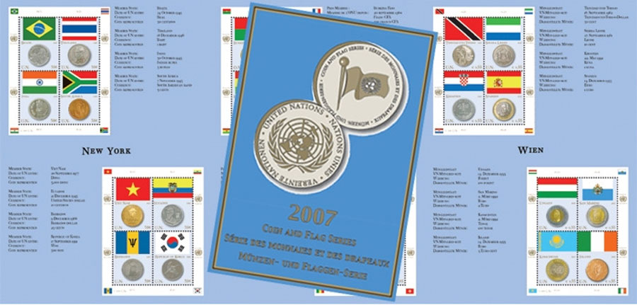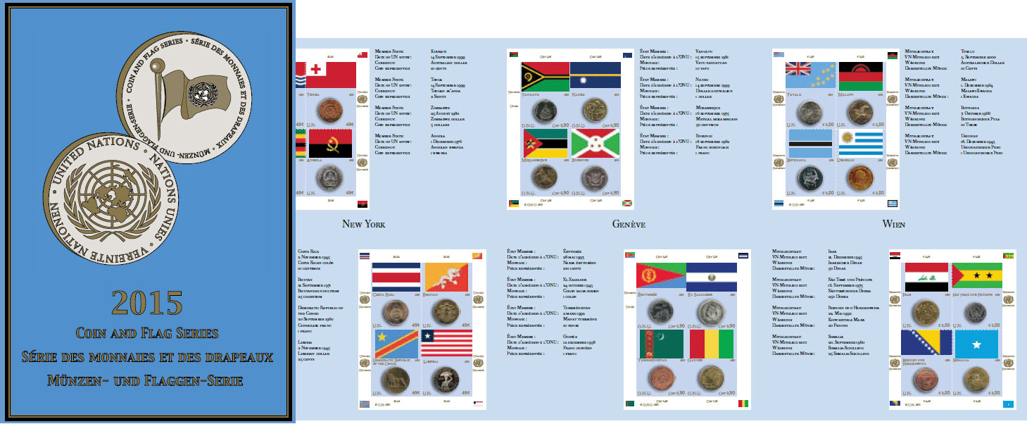 Serie wird jedes Jahr die Münzen und Flaggen von 24 UN-Mitgliedstaaten